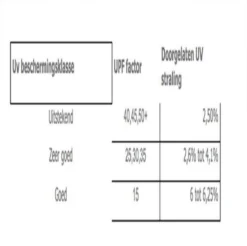 - UV index is 40+ (uitstekende categorie)