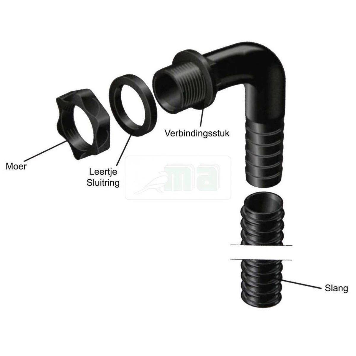 Compleet met aansluitpijpje en montage-handleiding.